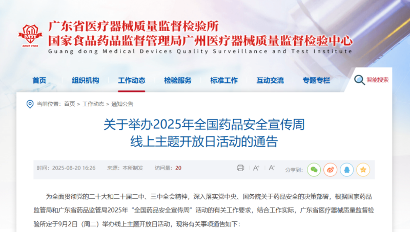 8月20日,廣東省醫(yī)療器械質(zhì)量監(jiān)督檢驗(yàn)所發(fā)布通知,定于9月2日(周二)舉辦線上主題咨詢開放日活動(dòng),具體主題及參會(huì)方式如下: