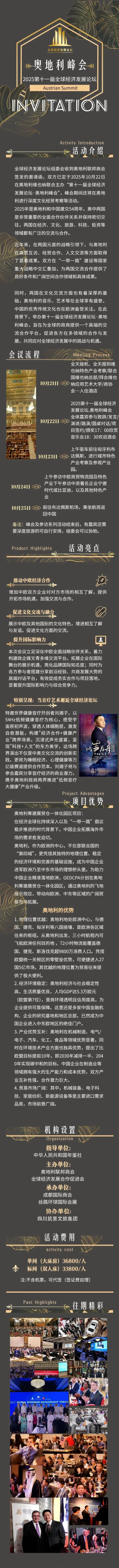 值此中歐合作重要機遇期,全球經(jīng)濟發(fā)展論壇組委會應(yīng)奧地利聯(lián)邦商會(WKO)之邀,將于2025年10月22日—10月25日隆重舉辦第十一屆“全球經(jīng)濟發(fā)展論壇·奧地利峰會”及匈牙利參訪。歡迎感興趣的企業(yè)家朋友識別下方二維碼報名!